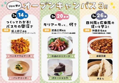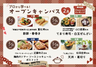 河原調理専門学校のイベントや体験入学情報、